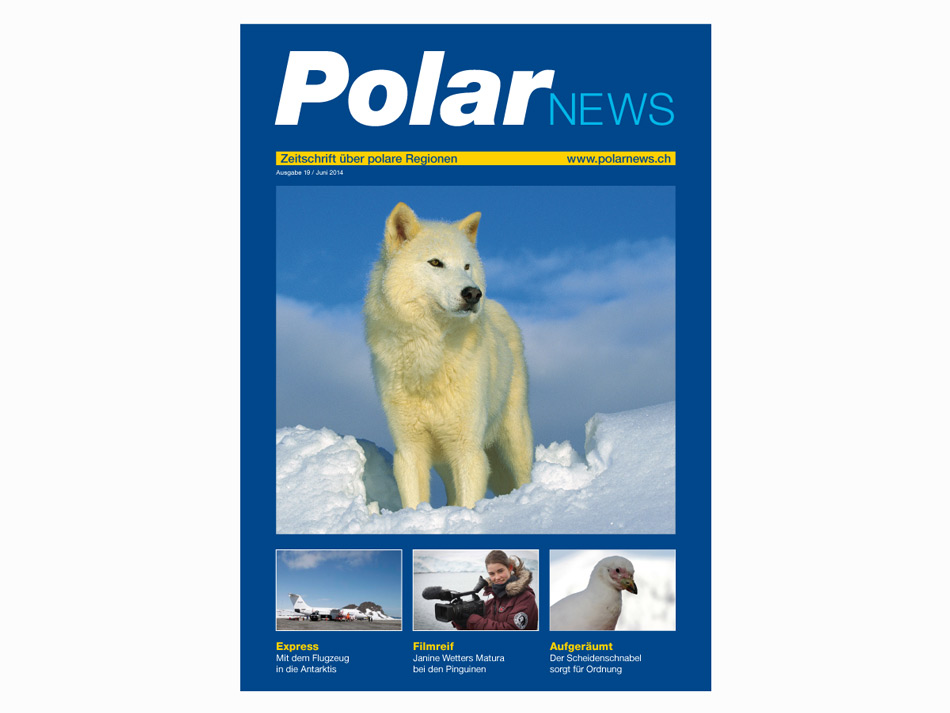 ...und weils so schön war im letzten Heft, sind wir für die neue Ausgabe von PolarNEWS gleich bei 78 Seiten geblieben. Denn so haben wir noch mehr Platz für aktuelle Geschichten aus den polaren Gebieten. Diesmal unter anderem über den Arktischen Wolf, über die Wirren um die erste emissionsfreie Forschungsstation in der Antarktis und über die 17-jährige Janine Wetter, die für ihre Maturaarbeit zu den Pinguinen gereist ist.